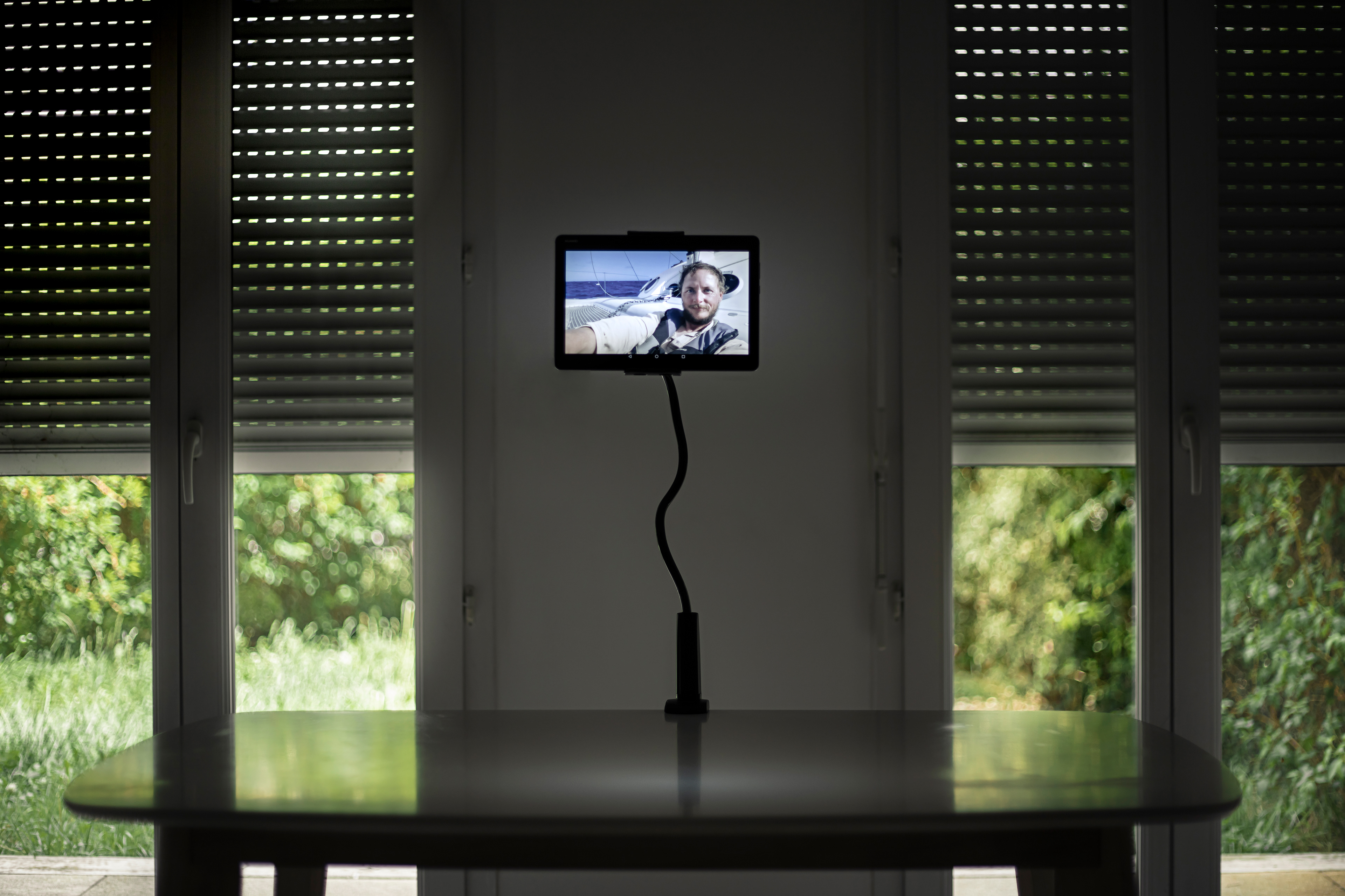 Nous nous entraînons dès lors, aujourd’hui, au monde post-humain ; nous faisons semblant de croire en cette image numérique, nous habituant même à cet être synthétique, à ce proche, dont le corps se découpe aux frontières de l’objet. Sa conversation est pourtant devenue maladroite par l’inconstance du débit internet, son visage organisé en grandes masses colorées de pixels est déformé par la caméra, ses mouvements sont flous et saccadés, son existence, éphémère, est marquée par de fréquentes disparitions du cadre et s’évanouira tout à fait quand la conversation s’achèvera, ne laissant aucune marque de son passage, sinon un écran vide de toute activité. Mais cet objet, surface embryonnaire, mûrira le jour où il nous correspondra anatomiquement ; ce n’est qu’une question formelle, une question de plastique, de métal, de vis et de boulons pour qu’il se mue en organisme.